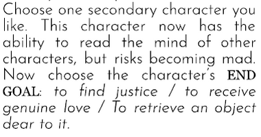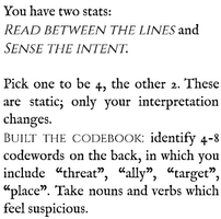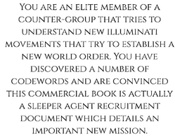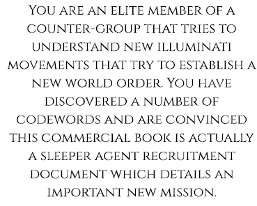 Two bookmark RPGs:Find the NWO conspiracy or a secondary character has mind reading powers