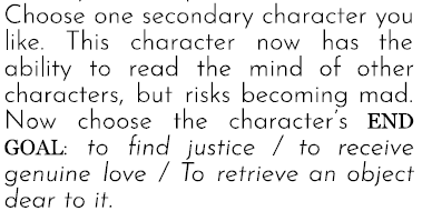 New version is available now. After playtesting, it became clear that my focus was a bit much on the literary. This one has quite some changes on both games. First, it introduces stats and more choice for the player to interact. Second, it has two different escalation systems. In Use this Book, I tried to make the paranoia a bit more to fit the theme. With Experience this book, there was a lacking tension. Now, it isn’t anymore about whether it is moral to abuse psychic power, but rather how far you would go if you would know that you could become mad because of it. This still needs quite a bit of playtesting, so should you have the opportunity, please do so!